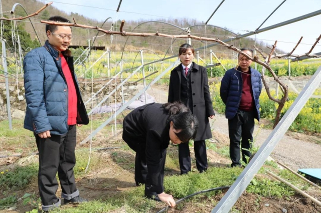 春风和煦的三月,王家山村道路一旁,粉红的桃花枝头烂漫,看着葡萄基地滴灌硬管里喷出的水花,老吴的脸上满是笑意。再过4个月,这里就要迎来大批前来采摘葡萄的市民。